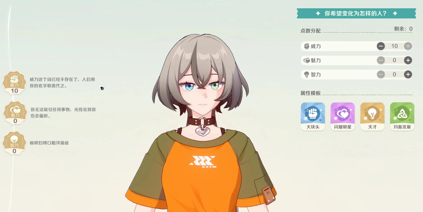 与传统设定不同,本作的女主并非固定角色,而是由玩家亲自扮演。游戏提供了高度自由的角色创建系统,允许玩家自定义外貌特征,包括发型、瞳色、脸型等细节。无论是金色双马尾的活泼少女,还是黑发垂肩的冷静类型,都能随心打造。更特别的是,玩家还能分配属性点数,如魅力、智力等,选择成为众人瞩目的焦点,或是一位逻辑缜密的推理者。