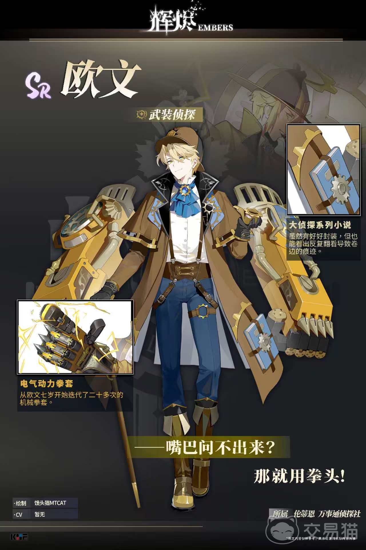 在《辉烬》这款游戏中,玩家将化身传火者,在一片被侵蚀的大陆上与众多化身为烬天使的伙伴共同作战。欧文是其中一位备受关注的SR级格斗系角色,凭借其易获取性和稳定的战斗表现,成为每位玩家都应掌握的核心角色之一。