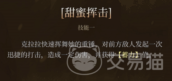 技能一“甜蜜回击”是一次快速锤击,命中后可稳定提升蓄力值,适用于衔接连招或补足能量。相较之下,技能二则具备更强的战术价值。释放时,克拉拉挥舞大锤进行旋转突进,路径上的敌人都会受到伤害,并根据所造成的伤害量回复蓄力值。若技能成功命中目标,将解锁派生技“蜜蜡锤”与“野蜂轮舞”,实现连招延伸。