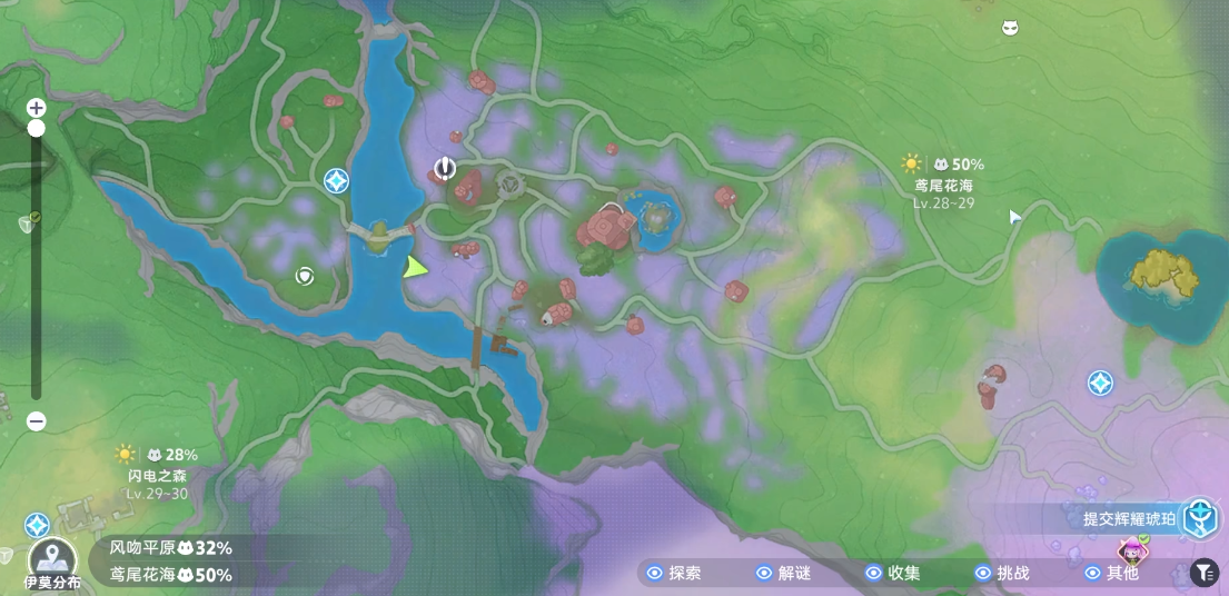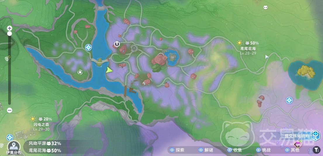 游戏地图广阔,各类伊莫分布在不同的生态环境中。蝶系伊莫通常栖息于植被丰富、花朵密集的区域,尤其是草原和花海地带最为常见。荧光蝶也不例外,玩家可在这些区域进行重点探索。值得注意的是,该生物更倾向于在傍晚至夜间时段出没,因此选择合适的时间段能显著提升遭遇概率。如图所示位置为高频刷新点之一,建议多次巡视。此外,荧光蝶性格胆小,一旦感知到周围动静过大或投掷失误,便会迅速逃离,因此出手时务必确保精准度,避免惊扰目标。