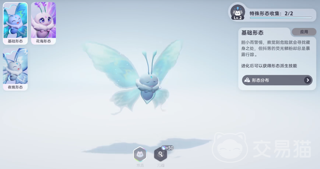 荧光蝶存在多种外观形态,每种形态对应特定的环境条件。基础形态特征为翅膀散发蓝色光芒,情绪愉悦时触角会呈现爱心形状;花海形态则通体转为粉紫色,头部触须演化成花瓣状,需在起风天气下的花海区域才可遇见;夜晚形态的翅膀荧光变为淡蓝色,仅在夜间环境中显现。想要集齐所有形态,必须根据各自的触发机制,在对应时间与天气条件下进行搜寻。