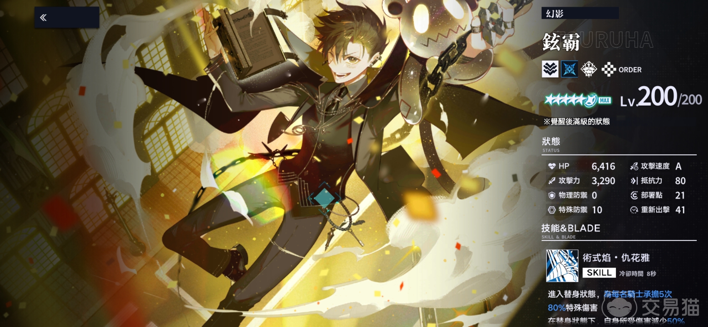 铉霸(幻影)属于替身防御类前锋,具备独特的替身机制,可在战斗中进入特殊状态,为全队分摊多次伤害,同时显著降低自身承受的伤害量。其BLADE技能具备强力的控场效果,能将范围内的敌人拉至中心并造成群体打击,既能实现聚怪,又能打断敌方节奏。该角色在防御与控制之间取得良好平衡,是前排阵容中的核心选择之一。