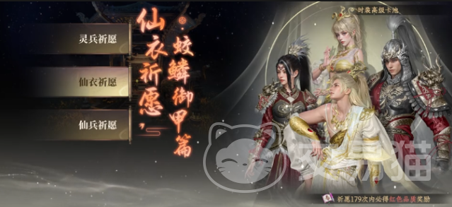 游戏内的祈愿系统分为三类:灵兵祈愿、仙衣祈愿和仙兵祈愿。每种祈愿对应不同的奖励内容。灵兵祈愿主要产出武器类道具,仙衣祈愿则专注于时装类外观,而仙兵祈愿则提供更高强度的稀有武器。若追求战斗表现或收藏炫酷武器,建议关注灵兵与仙兵祈愿;若偏好角色造型变化,则应优先考虑仙衣祈愿。