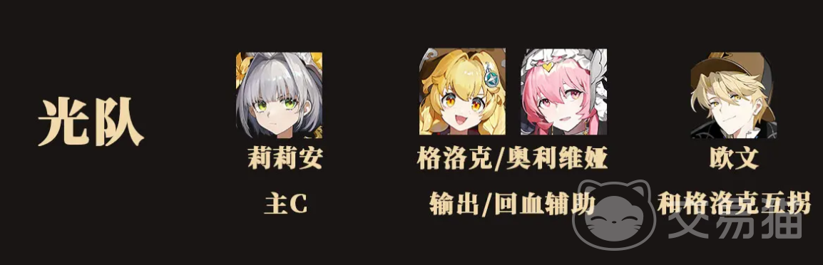 以水属性阵容为例,可选择北洛作为主C,搭配知世提供治疗与加速效果,保障团队生存能力,同时配合柯尔特形成双迅击联动,进一步强化输出效率。此阵容兼具高爆发与续航能力。除水队外,也可参考下图构建光属性队伍,灵活应对不同战斗场景。