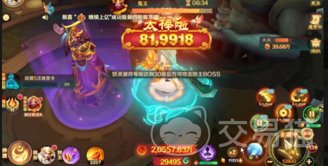 挑战鬼王并非轻而易举之事,首要条件是角色等级必须达到30级。未达此门槛的玩家只能旁观无法参与,即便心急也无济于事。一旦满足等级要求,便可正式开启与鬼王的对决。战斗前系统会提示“太禄陆 81,9918”,虽然该提示的具体机制尚不明确,但其带来的紧张氛围令人血脉贲张。进入战斗后,鬼王展现出强大的压制力,满屏飞舞的技能特效让整个战场显得异常激烈。
