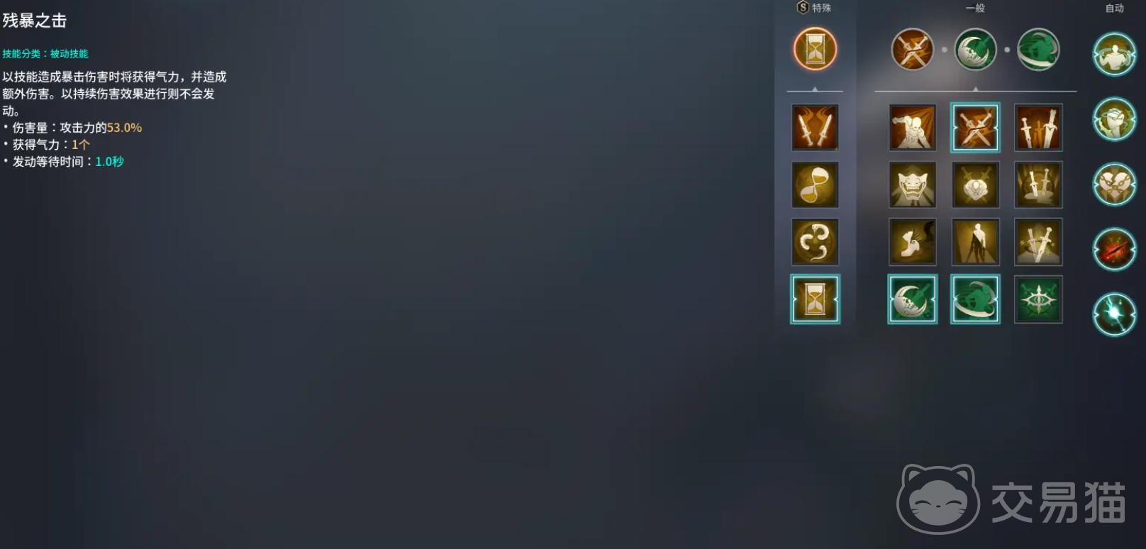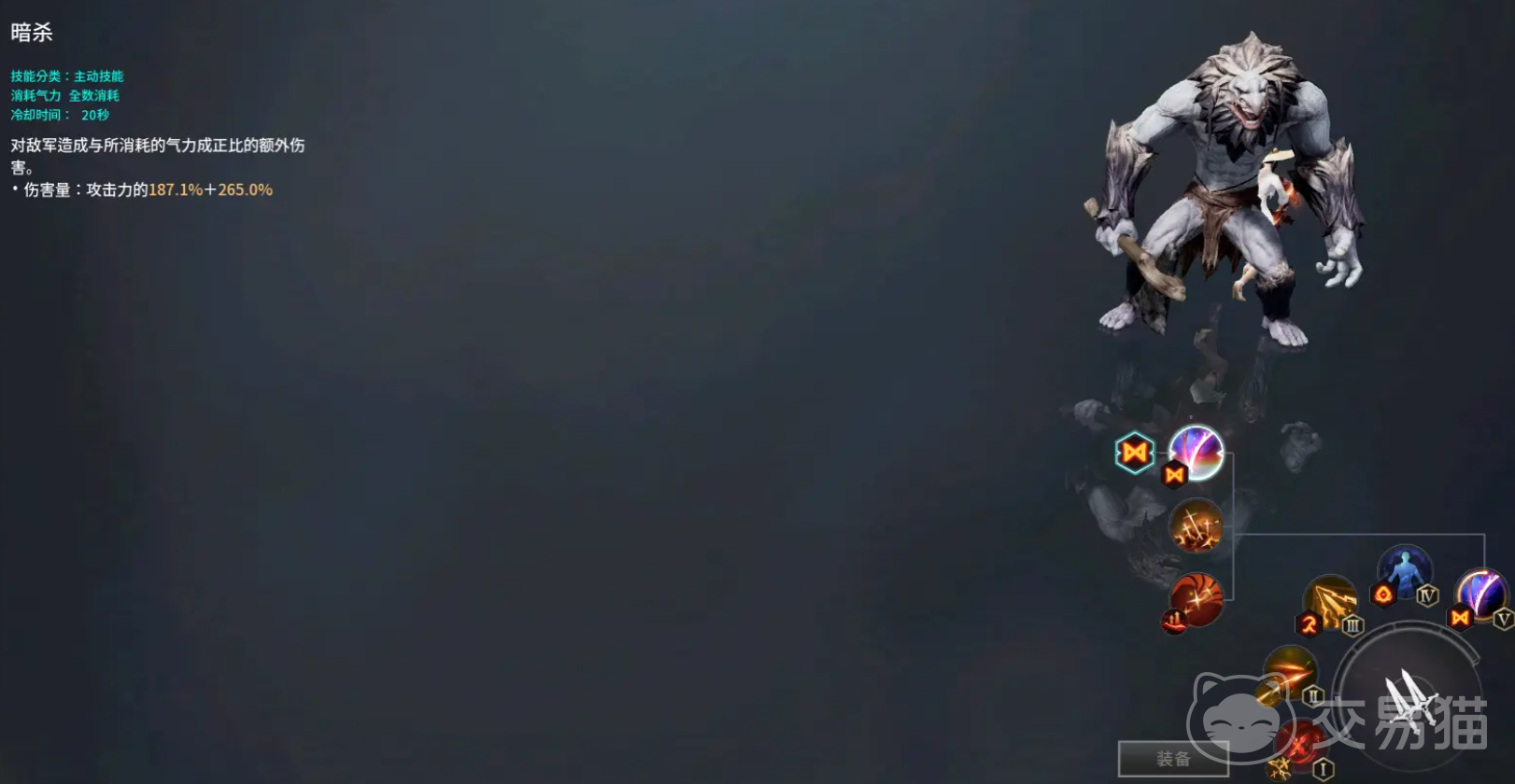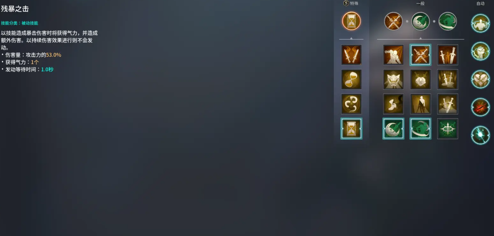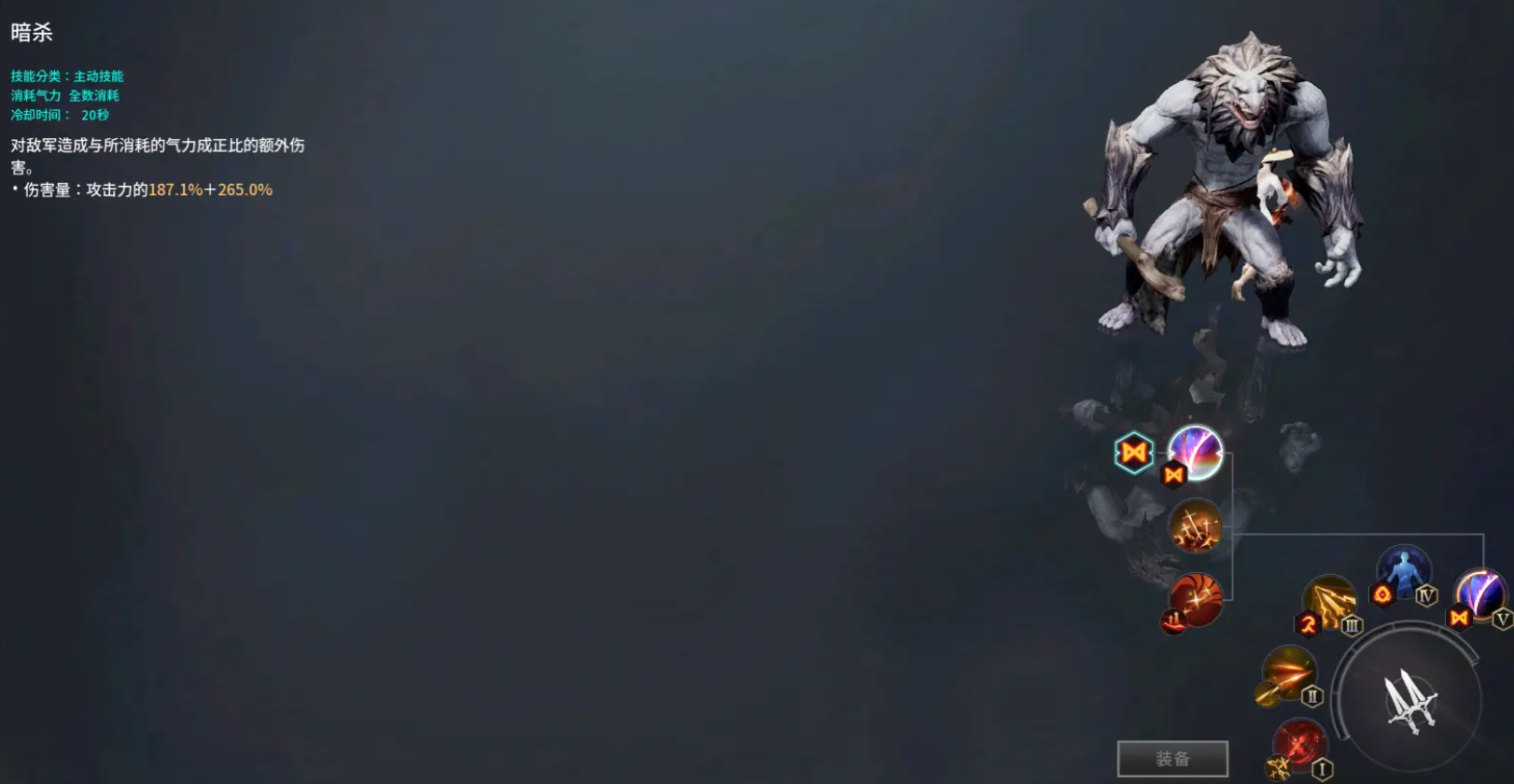 “利刃风暴”使双刀向目标方向高速突进,同时附加出血状态,持续削弱敌人生命值。“乱刀”则是一项高风险高回报的技能,需消耗全部气力,释放一次强力范围打击,适合在气力充足时用于终结战斗。“残暴之击”可在技能暴击时返还部分气力,并触发一次追加伤害,但此效果不适用于持续性伤害类技能。
