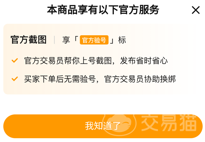 以上就是交易猫这款便捷游戏卖号软件推荐的所有内容了,不管是卖家身份认证、价格估算还是账号商品上架都不需要复杂的操作,而且最让人头疼的账号信息整理和截图都能够由平台客服为我们代劳,基本上点几下就能够顺利上架商品。在后续的买家选购中也有官方交易员帮助我们进行发货以及换绑,售后成本非常低,只需要大家保持诚信交易就不会出现什么问题,赶快下载交易猫最新版本尝试一下吧。
