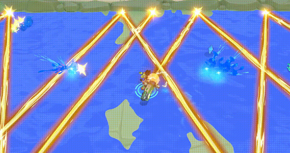 该武器释放技能后会射出一道持续5秒的高能光束,具备穿透与折射特性。当光束触及场地边界时会发生反射,对路径上所有敌人造成连续的能量伤害,适合清理成群怪物或封锁特定区域。