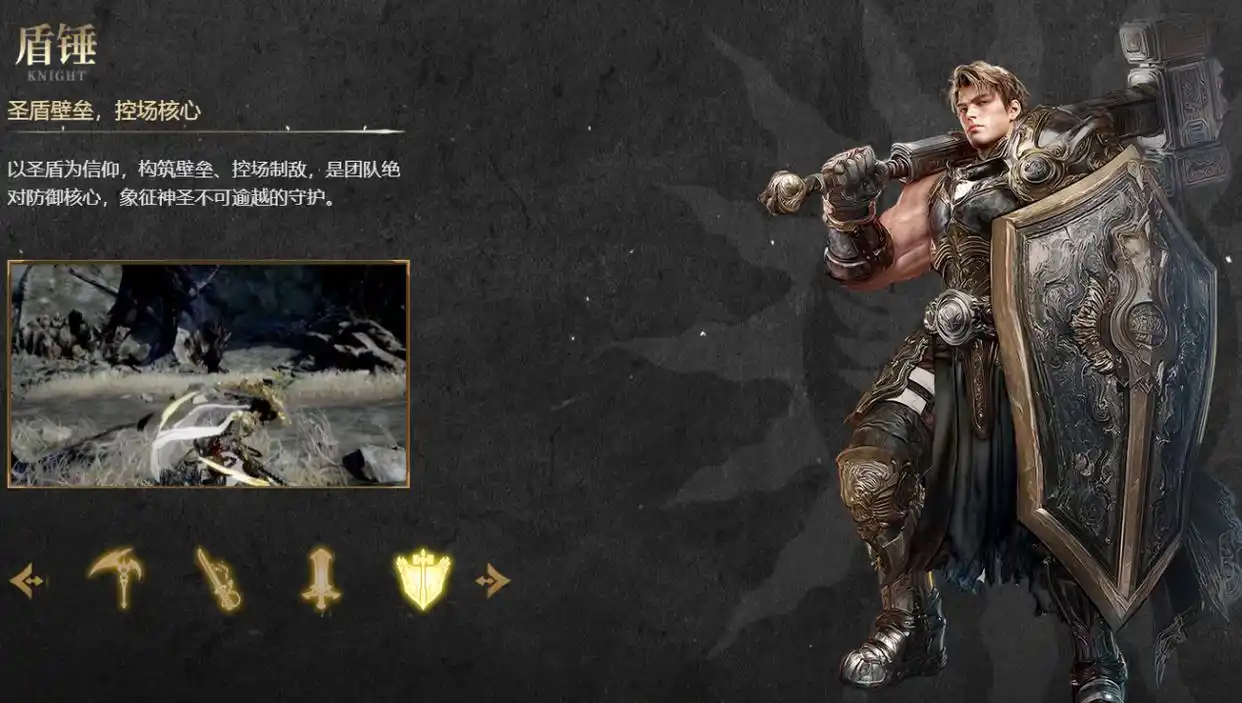 最后推荐:盾锤。作为一名防御型职业,拥有强大的生存能力和群体控制手段,上手难度较低。核心技能可完全格挡正面攻击,并为队友提供加速等辅助效果,在团战中担任前排坦克职责,有效保护后排输出。对于喜欢稳扎稳打、承担团队守护任务的玩家来说,是非常理想的选择。