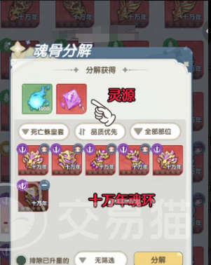以一个10万年的魂骨为例,这类稀有道具本身便具备强大的属性加成效果。虽然获取难度较高,但通过分解同样能获得可观的灵源回报。玩家只需进入分解功能界面,选定对应魂骨后执行分解操作,便可快速获取大量灵源。这一途径成为许多玩家提升资源储备的有效手段,对战斗力的成长起到积极推动作用。