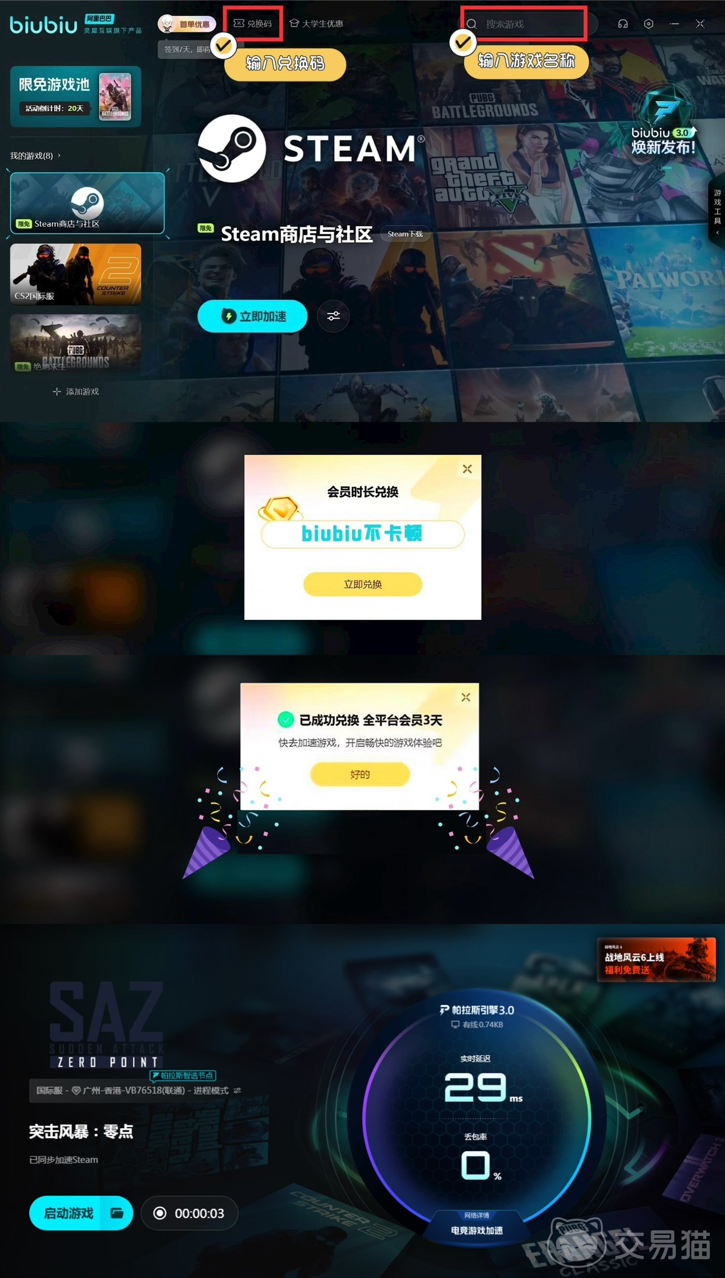 相较于传统加速方案,biubiu特别针对Steam这类数字发行平台进行了专项优化。无论是在浏览游戏详情页、查看用户评价,还是下载试玩版本或更新补丁的过程中,均可实现高速响应与稳定加载,避免因网络波动错过限时优惠或测试资格。同时,加速过程中支持后台运行,用户可随时切换查看实时连接数据。在福利方面,biubiu也展现出十足诚意。新用户完成注册登录后即可获得平台赠送的24小时全功能免费体验权限;体验期结束后,还可通过指定活动入口继续兑换3天免费加速时长。