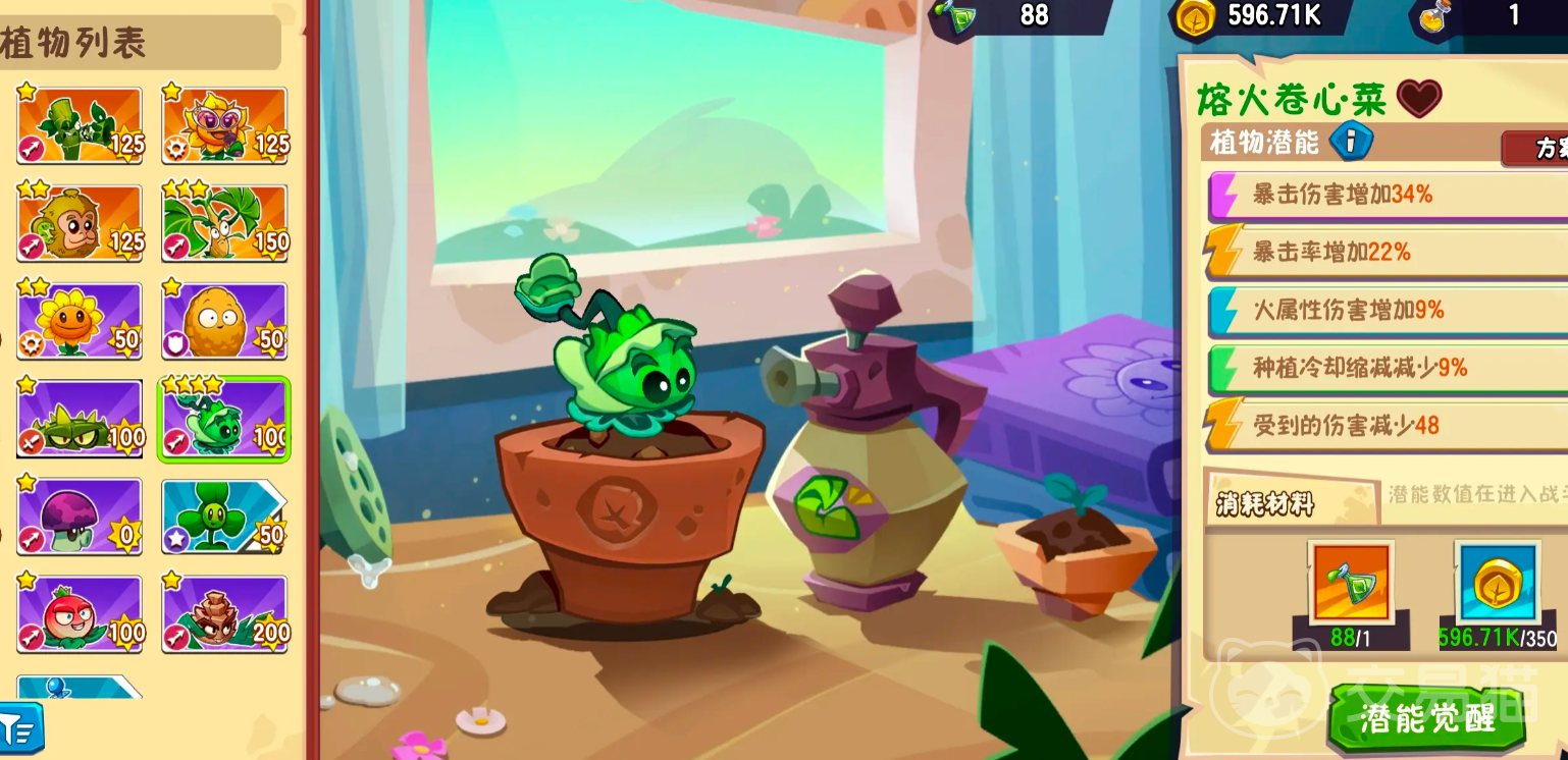 配合火属性雨露进行融合后,黄金卷心菜将进一步升级为融火卷心菜,其普通攻击附带火焰元素,能对多行目标造成范围持续伤害(AOE)。在特定发射条件下,还有几率一次性投掷多个卷心菜,显著增强清怪效率。