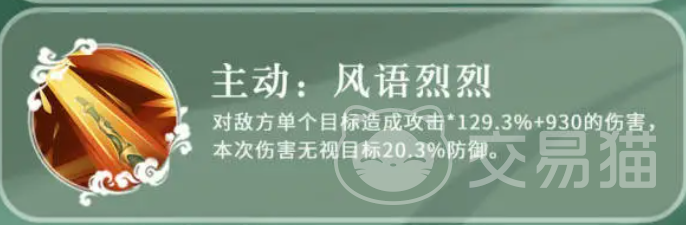 另一个主动技能“风雨烈烈”为单体攻击技,能对指定敌人造成129%攻击力的伤害,并附带930点固定伤害,且无视目标20%防御。配合被动“春雷震”,徐庶可获得21%忽视反震属性,并在普通攻击时额外无视11%防御。当“星列满目”成功驱散敌方增益时,对该目标造成的伤害还将提升42%,若伤害未超过自身属性上限,则可能再次触发“集思广益”,形成技能联动循环。