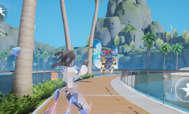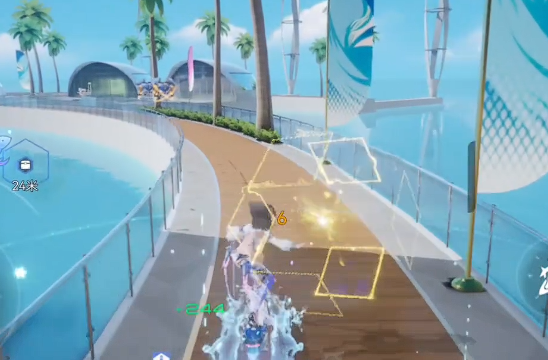 二技能则具备一定的输出能力,使用后角色将进入冲浪状态,向前撞击敌人并造成伤害,同时积累升浪值。当该数值达到一定阈值后,可触发额外的二次打击效果,增强战场压制力。