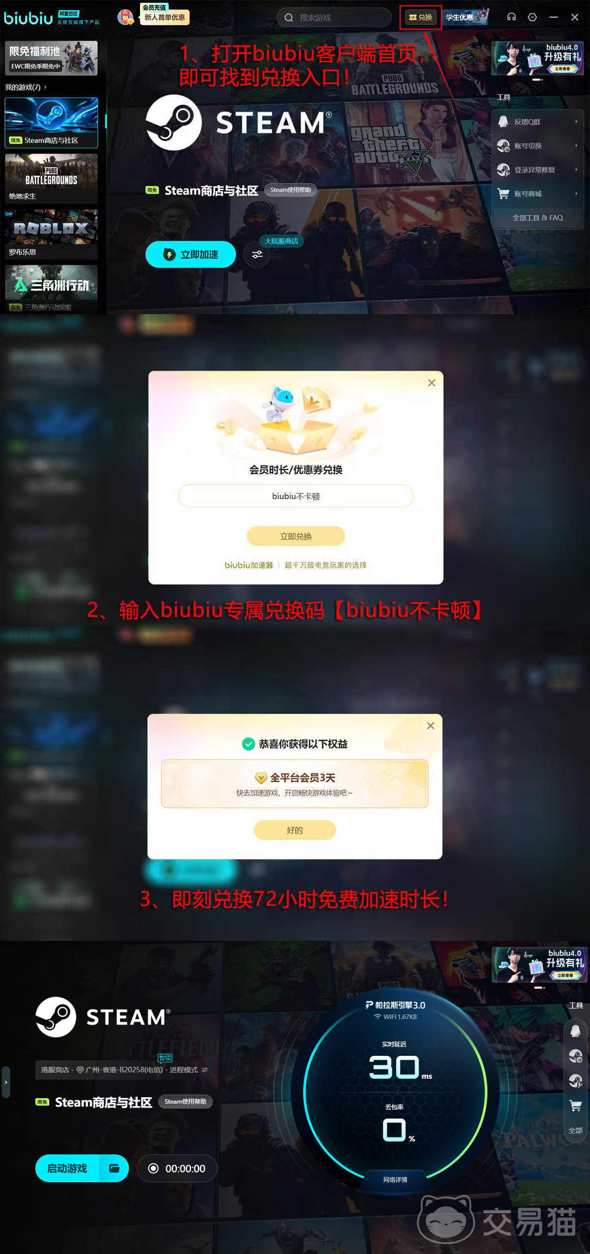 此外,近期相关服务还与知名电竞选手Aixleft达成技术合作,针对高频使用场景进行了深度调优。目前参与【biubiu不卡顿】口令兑换活动的用户可获得72小时免费使用权,新注册账号还可额外获赠24小时,累计达96小时体验时长。