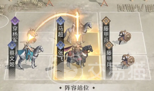在布阵时,务必确保马超位于张飞和蔡文姬的追击格范围内,以便触发协同效应,充分发挥其主C作用。前排应部署盾兵类武将承担伤害,后排安排弓兵或其他远程输出单位,形成合理站位结构,提升整体作战稳定性。