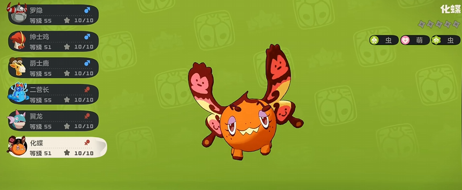 在构建萌系阵容时,建议优先选择化蝶作为核心主力精灵。它具备为全队施加“萌化”状态的能力,可激活额外攻击效果,并能强制对手进入原始形态,显著降低敌方输出强度,从而为我方创造有利的对战环境。