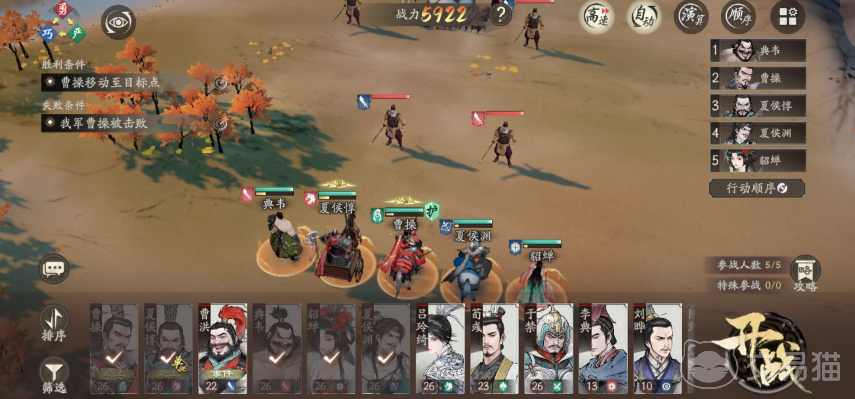在组队配置方面,曹操担任主力辅助,副将应侧重属性强化与战意恢复功能。卞氏是理想搭档之一,可为全体队友提供22%攻击力加成,有效提升整体爆发能力;邹氏则擅长物理输出并具备战意补充机制,加快技能释放节奏;邢道荣同样适合作为协同单位,拥有战意回复能力,使操作更具灵活性和容错空间。