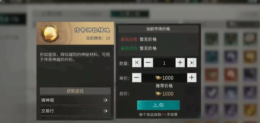 此时可将这些冗余道具挂售至交易行,换取元宝或铜币。所获得的游戏货币可用于购买当前急需的物资,从而完成资源的有效转换,提升整体发育效率。