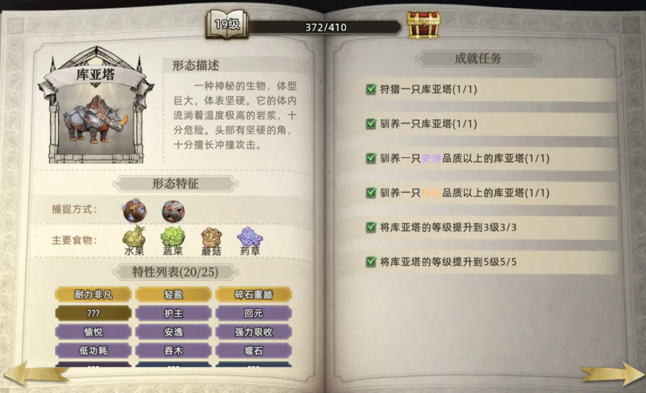 库亚塔是一种罕见的大型生物,外表覆盖坚硬外壳,体内蕴含高温岩浆,头部生有锐利尖角。捕获前需经过激烈对抗,存在一定风险。但一旦驯服,可为角色提供10%的火属性伤害加成,在输出方面表现突出。