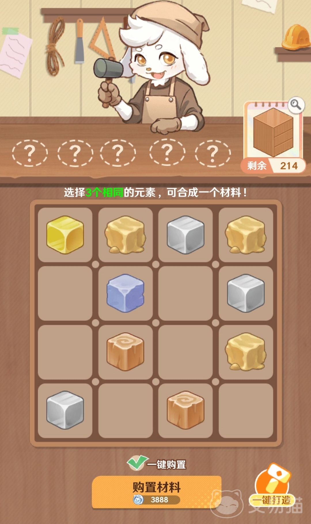 当界面中出现三个相同的打造元素时,可将其合并为一种打造材料。这种操作方式类似于经典的“三消”机制——选中三个相同元素即可触发合成,转化为可用材料。当材料积累到一定数量后,系统将自动开启打造流程,并随机产出一件家具。值得注意的是,这个过程完全随机:即使使用完全相同的材料组合,最终结果也可能截然不同。