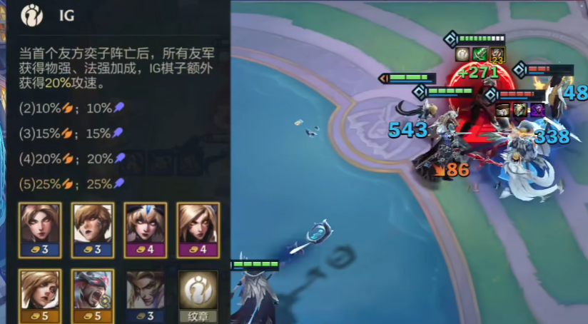 此外,新模式还推出了多个全新羁绊体系。激活IG羁绊后,当我方首个单位阵亡时,全体友军将获得攻击力与法术强度增益,同时IG阵营棋子额外提升20%攻击速度。FPX羁绊则提供攻速加成,并在累计对敌方造成1000点伤害后,为我方当前生命值最低的单位恢复一定血量。RDG羁绊可召唤瑟庄妮参战,其基础属性会随召唤英雄的星级同步变化,星级越高,战斗力越强。