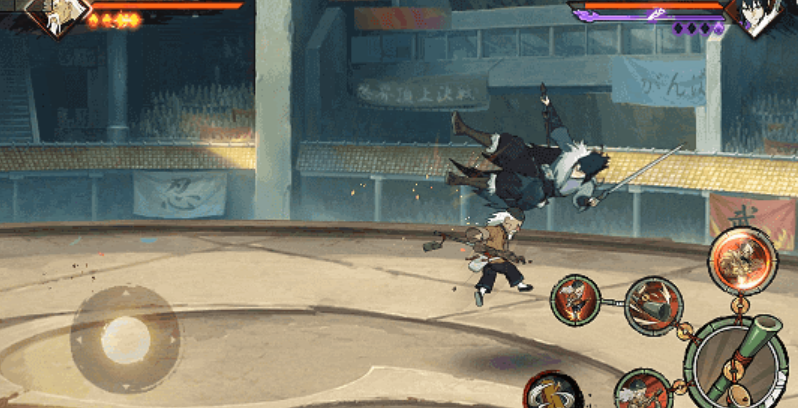当大野木处于竹棍附近范围时,可激活特殊子技能,点击后切换至“立棍”状态以规避伤害。在此状态下,一技能使其腾空而起,释放尘遁能量冲击地面,随后以岩石包裹手臂猛烈砸地,动作结束后转为“离手”。二技能则会生成多个岩锥环绕自身,发动突进式范围打击,清除路径上的敌人,技能终结后返回“跟随”状态。其奥义技能将在原地召唤两名分身,共同抓取目标,本体则借助竹枝高速穿梭进行连续打击,最终凝聚出巨型岩龙持续轰击,并将敌人封锁于石牢之中。
