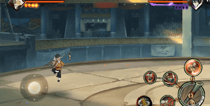 在“跟随”状态下,一技能可将竹棍置于身前形成防御姿态,期间具备霸体效果并减少受到的伤害;若在此阶段按下普攻,即可提前结束格挡并向前踢出竹棍,造成突刺击飞效果。二技能则让角色跃起至竹棍上方施加压力,使竹棍弹射升空,随后玩家可控制其落点砸向敌人,并自动转入“离手”状态。