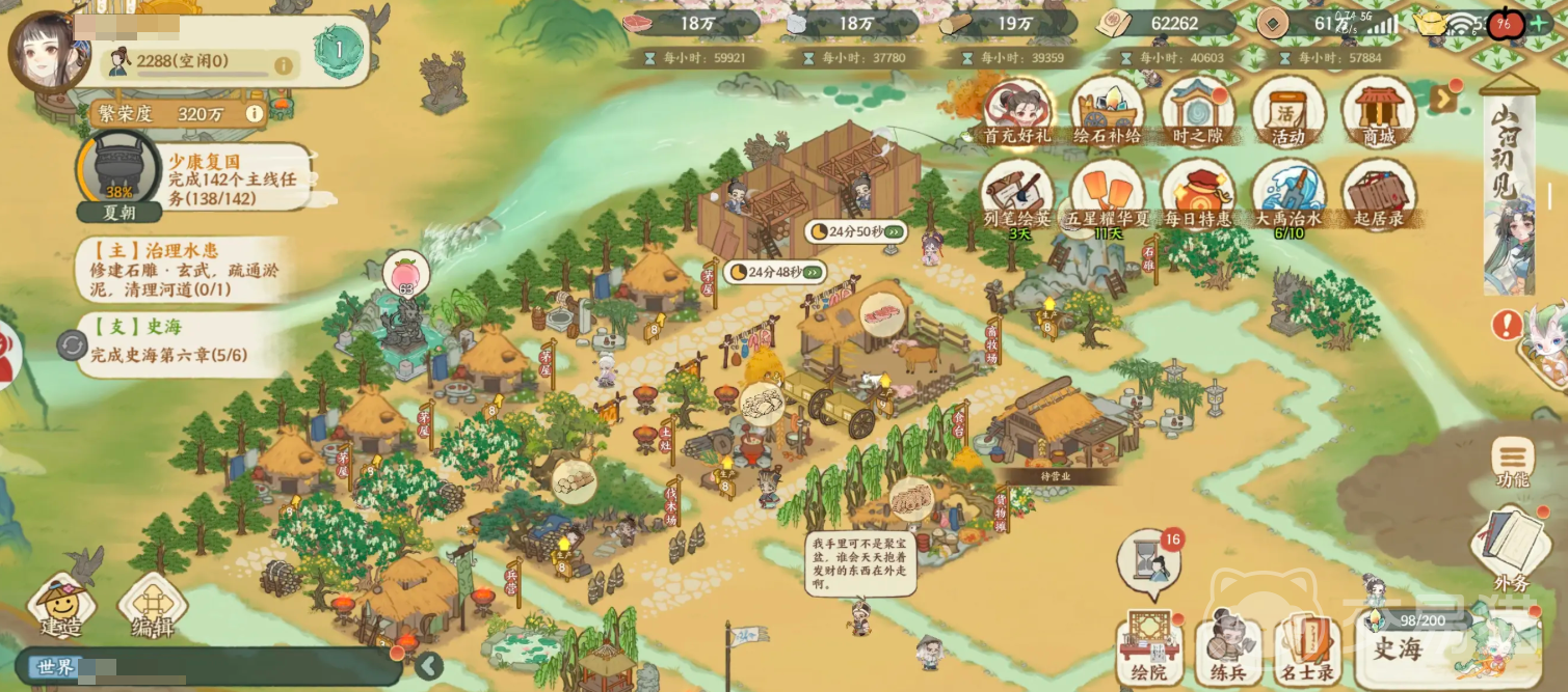 从玩法角度来看,《华夏绘世录》是一款以中华传统文化为背景的模拟经营与历史角色养成类手游。玩家扮演“绘世者”,执掌“指点江山笔”,通过重建朝代、建设城池、推动科技发展以及招募历史名士来书写属于自己的文明篇章。游戏中涉及资源调配、建筑升级、人才派遣及政策研发等核心机制,策略性较强。同时,可收集多位古代名人,并将其安排至合适岗位或参与外出探索任务。