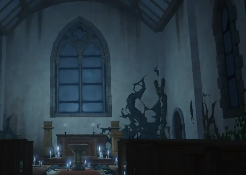 重做后的温莎镇整体色调大幅变暗,进入区域后即可感受到强烈的阴郁气息。街道与建筑遍布腐蚀痕迹,墙体上的异化纹理清晰可见,配合低光照环境,极大增强了沉浸式的恐怖体验。每一处角落都透露出被自然力量侵蚀后的荒凉感,令玩家仿佛置身于一个已被遗忘的人类聚居地。