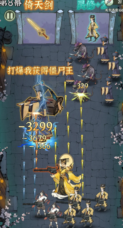 跑酷章节采用多段式设计,每位出战的灵修角色都将独立完成指定关卡任务。途中会出现各类增益奖励选项,如“倚天剑”加持战力或“灵修数量+2”增强阵容,玩家需结合当前战力权衡选择,以确保顺利通关并解锁后续挑战。