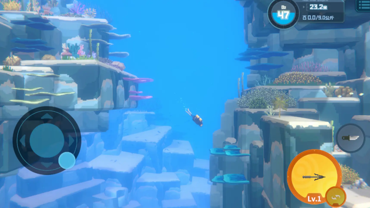 游戏初期开放的潜水区域较为有限,主要集中在浅海地带。在这里,玩家可以使用捕捞网捕捉灯笼水母、海虾和螃蟹等基础生物。同时,游戏还融入了真实的潜水机制,例如利用海胆分散鱼群注意力,或借助洋流方向判断潜在危险,提升沉浸感与操作策略。
