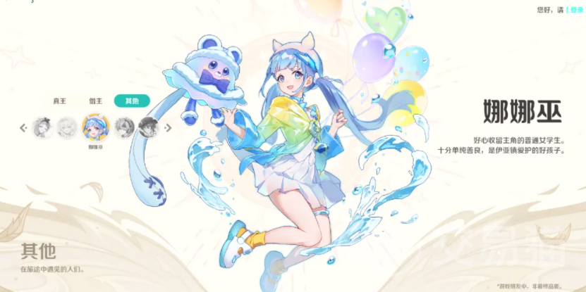 除了真王之外,玩家在旅途中还会结识多位同伴。例如娜娜巫,她以清新可爱的女大学生形象登场,搭配浅蓝色水元素精灵,整体视觉风格明亮柔和。另一位伙伴小华则展现出沉静气质,身着中蓝色服饰,并携带着同色调的辅助精灵,给人以安宁之感。游戏中还有众多其他角色,各自拥有不同的背景故事与战斗定位。