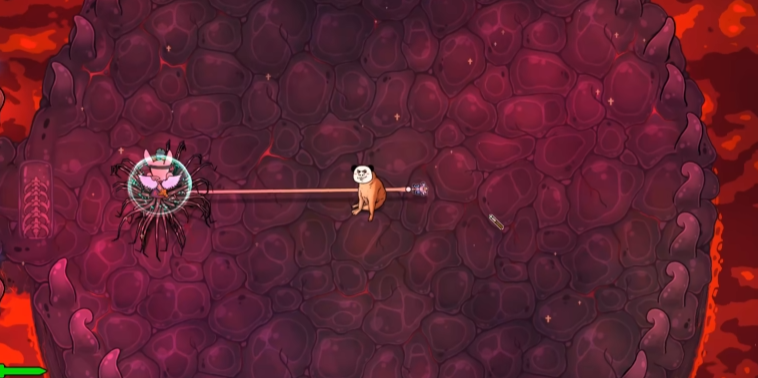 进入房间后会出现一个外形酷似狗头人的角色,这正是游戏的制作人化身。此时并不会立刻进入战斗状态,玩家可以主动与其对话。对话界面会弹出三个选项:“什么时候更新多人模式”、“什么时候出魔法工艺2”以及“你怎么长得像条狗”。前两个选项为趣味性回应,第三个则会直接激怒对方,开启战斗。