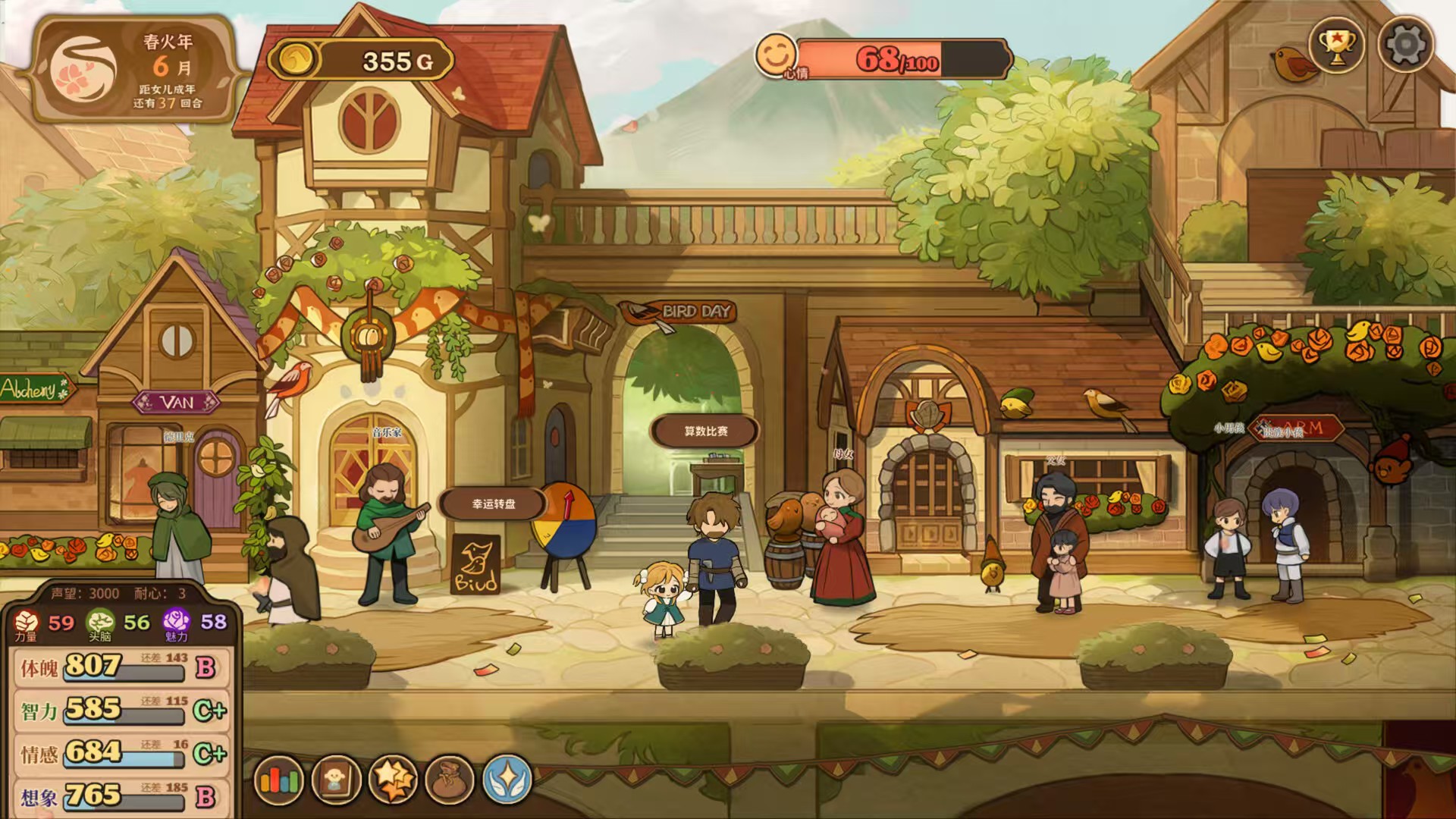 视觉表现方面,游戏采用纯2D美术风格,画面清新柔和,色彩搭配舒适自然。界面布局科学合理,虽功能繁多却逻辑分明,操作流畅。人物造型贴合魔幻主题,尤其是女儿的形象设计生动可爱,各年龄段的外观变化细腻到位。交互体验温馨动人,父女之间的点滴互动充满温情,为玩家带来沉浸式的情感共鸣。