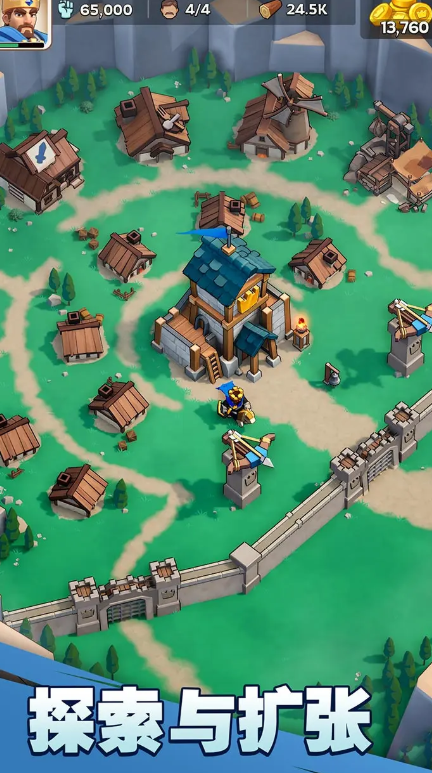 《奔奔王国》将传统的塔防机制与模拟经营玩法巧妙结合。在游戏初期,玩家需要操控领主角色进行防御作战,通过虚拟摇杆释放技能,带动其他单位协同输出,共同抵御敌方进攻。成功守卫据点后,系统会奖励金币和建筑资源,这些材料是后续发展村庄的基础。