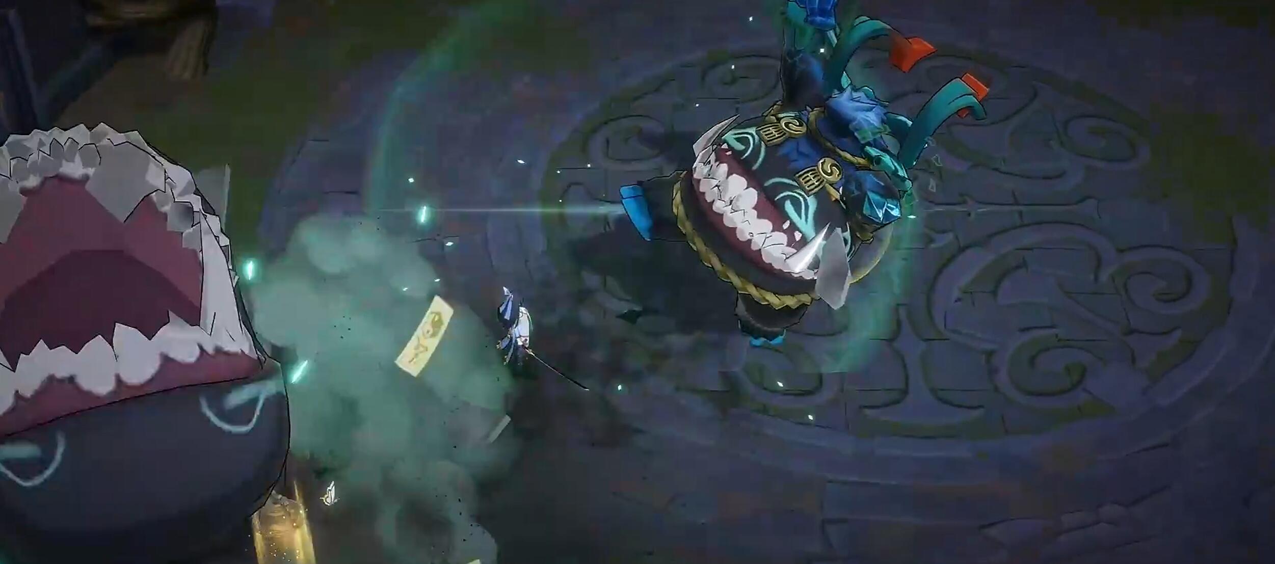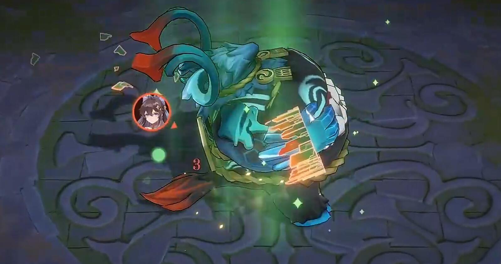 青渊凶厄具备三种属性技能:风、暗与雷,其中本体属于风属性单位。针对这一特性,玩家可优先选择土系、石系或电系角色进行对抗,能有效提升输出效率。虽然该Boss体型庞大,但行动极为灵活。当附近有目标时,他会蜷缩身体发起高速冲锋,随后使用双臂交替拍击地面,形成连续打击。需要注意的是,在此攻击阶段中Boss处于霸体状态,免疫控制且不适合强行输出,建议此时以闪避为主。