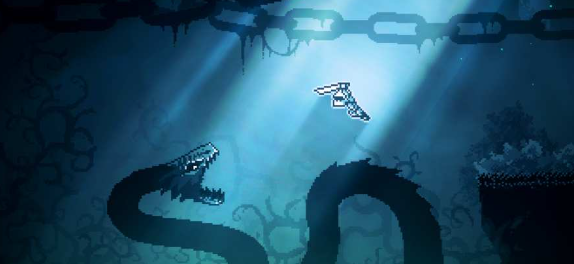 切换到骑士视角后, gameplay 转向更具操作性的动作挑战。他拥有一把多功能匕首,既可用于对抗敌人,也能作为环境互动工具。例如,发现墙壁有裂缝时可刺入开辟新路径;面对深渊则能将匕首钉入横梁实现摆荡穿越。战斗没有连击系统,每次挥刀都需要精准判断时机。骑士动作迟缓,容错率低,一旦被怪物触碰便会掉血。正因如此,每一次成功斩杀都显得格外沉重——击杀后画面短暂变暗,匕首上的血迹缓缓褪去,强化了战斗的真实质感。