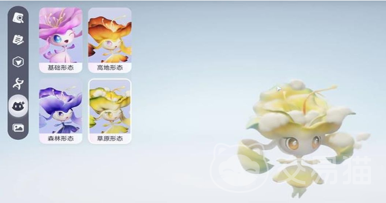 例如,适应高地环境的飘飘花多为橙红色调,而森林系则偏向幽深的蓝色,并带有藤蔓与叶片装饰元素。相比之下,草原形态的白色飘飘花较为罕见,其黄白相间的清新配色融合了草原植物的设计灵感。这些基础形态的差异将在花舞兰进化完成后继续体现于外观之上。