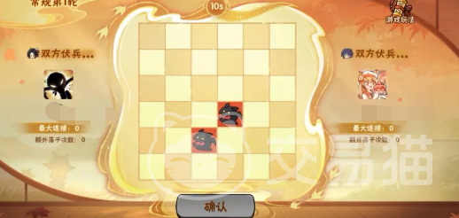 “棋道争锋”是一种独立于游戏主系统之外的1v1对抗性玩法,采用类似棋类博弈的形式展开。每场对局由两名玩家参与,在一个6x6规格的棋盘上进行三轮较量。每位玩家需在限定时间内完成落子操作,同时部署伏兵以干扰对手布局。