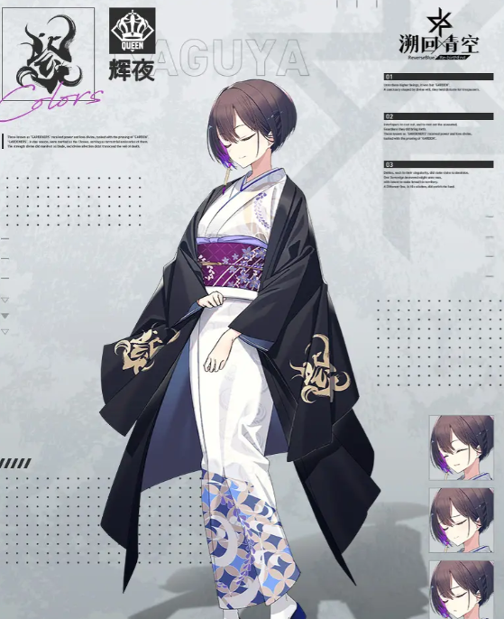 作为第二骑士团千紫的重要成员,辉夜是顶尖的咒术研究专家,因KING掌控者极少现身,实际由她代行管理职责,掌控组织运作方向。
