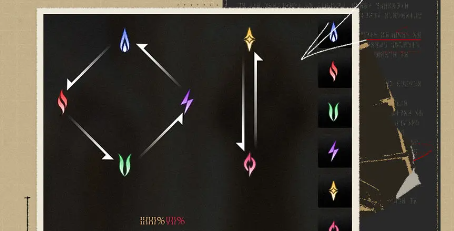 本作采用的是经典的元素克制结构,整体逻辑清晰明了。当某一属性成功克制对手时,不仅能发挥出额外的属性伤害加成,还能触发特殊效果;而被克制的一方则无法享受此类增益,并会受到负面状态影响。