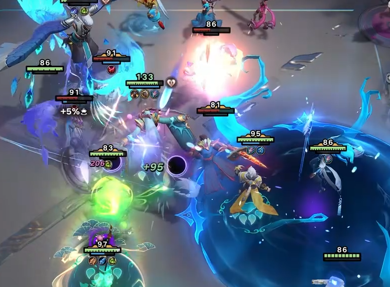 每局比赛将由六名玩家共同参与,在同一战场内展开博弈。战斗系统深度结合卡牌元素,玩家需通过调度和组合不同卡牌来增强角色实力或触发技能效果,从而在前期建立优势,逐步掌控战局走向。