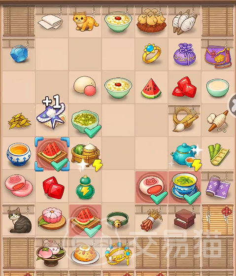 游戏初始阶段会引导玩家完成教学关卡,重点介绍其特有的合成式消除机制。以小麦为例,玩家需寻找相同图块进行配对合并,两个小麦合成后生成面粉,再将两份面粉合并为豆沙包,最后两个豆沙包再次合成即可完成一次完整消除,并获得铜板奖励。这一“三步合成”模式贯穿所有可合成物品,是消除环节的核心规则。