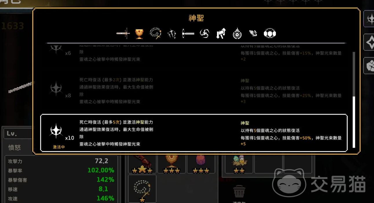 此外,在复活类装备的选择上,建议重点强化神圣属性。该属性可在角色阵亡后立即触发复活机制,若将神圣点数点满,则最多可复活五次。同时,每次复活后还能提升50%技能伤害,并额外生成5道神圣光束,结合龙人在人形与龙形之间的灵活切换,能够形成极为强势的续航与反打能力。