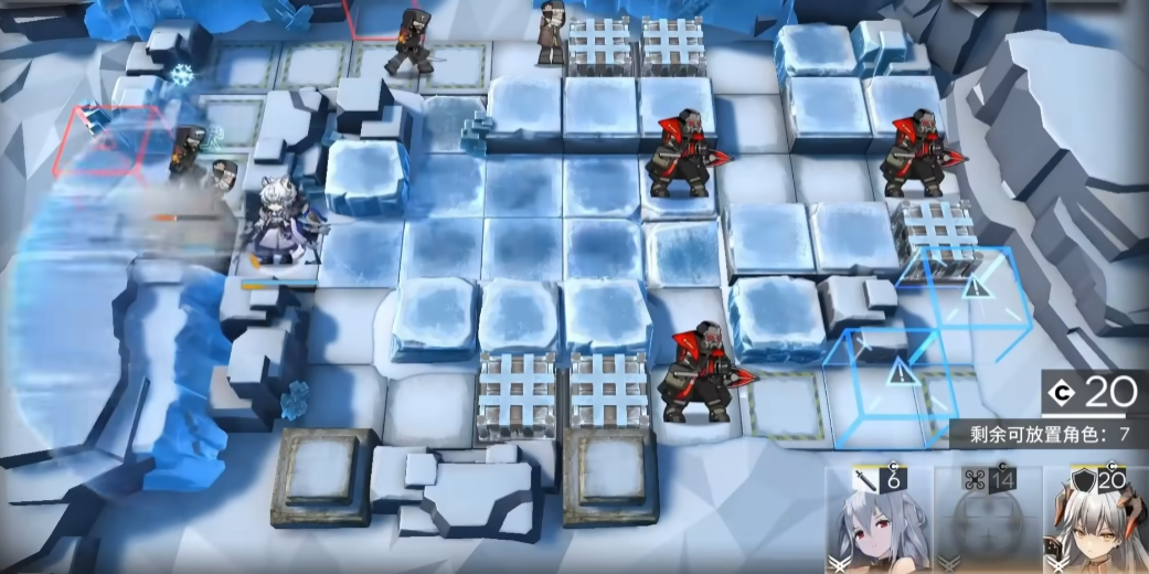 一技能“周旋的谋略”具备较强的资源调度能力。释放后立即获得数点部署费用,同时使待部署区域中距离“风雪之眼”最近的一名干员部署费用降低,优先级顺序为右侧的近卫、狙击和术师类干员。成功部署后,该干员还将获得基于凛御银灰最大生命值一定比例的护盾,有效提升关键单位的入场容错率。