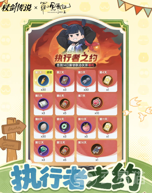 活动期间还将开启签到福利,连续登录即可领取各类实用道具,累计签到满14天更可直接获得哪吒角色。若希望获取更多伙伴,可通过完成指定任务获取转盘券,前往喵喵转盘进行抽取,保底可获得至少一位联动角色。