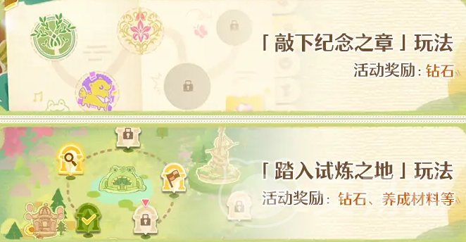 同时,四个全新小游戏也将加入版本内容,涵盖收集、试炼与许愿三种类型。每种玩法均设有独立奖励机制,通关后可领取灵感点数、钻石及各类养成资源,进一步丰富日常游戏体验。