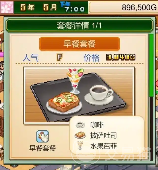 本作采用复古像素画风,营造出浓厚的怀旧氛围。玩家不仅能单独出售单品,还可自定义多款套餐,包括设定菜品数量与售价。通过推出性价比高的组合餐,不仅能提升日常营收,也有助于获得参加品鉴会的资格。