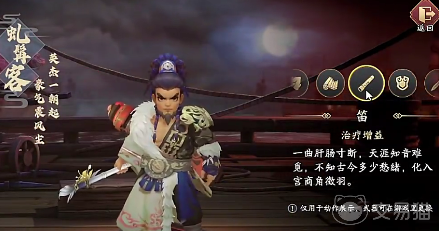 辅助类武器主要包括笛子、卷轴与羽扇。其中,笛子是团队治疗与增益强化的核心工具,具备法术输出能力的同时还能增强治疗效果。其必杀技需消耗3点怒气,可随机恢复多个己方单位的生命值,并允许玩家指定一名目标,使其获得更高的增益收益。生命回复量基于持有者自身最大生命值计算,在释放大招时还可能提升目标的物理防御能力。